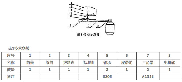 如圖1所示,重要零部件表1中給出。